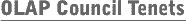 The OLAP Council was established in January 1995 to serve as an industry guide and customer advocacy group. Participation in the OLAP Council is open to organizations that are interested in the advancement of on-line analytical processing (OLAP) server technology.